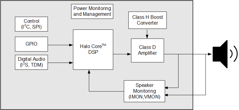 - Integrated DSP with audio enhancement and speaker protection algorithms